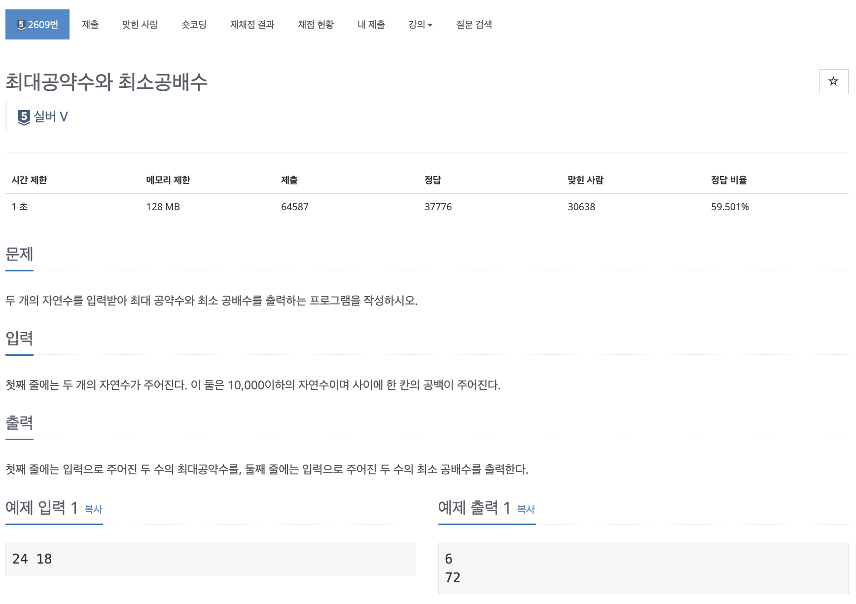 [2609] 최대공약수와 최소공배수 본문