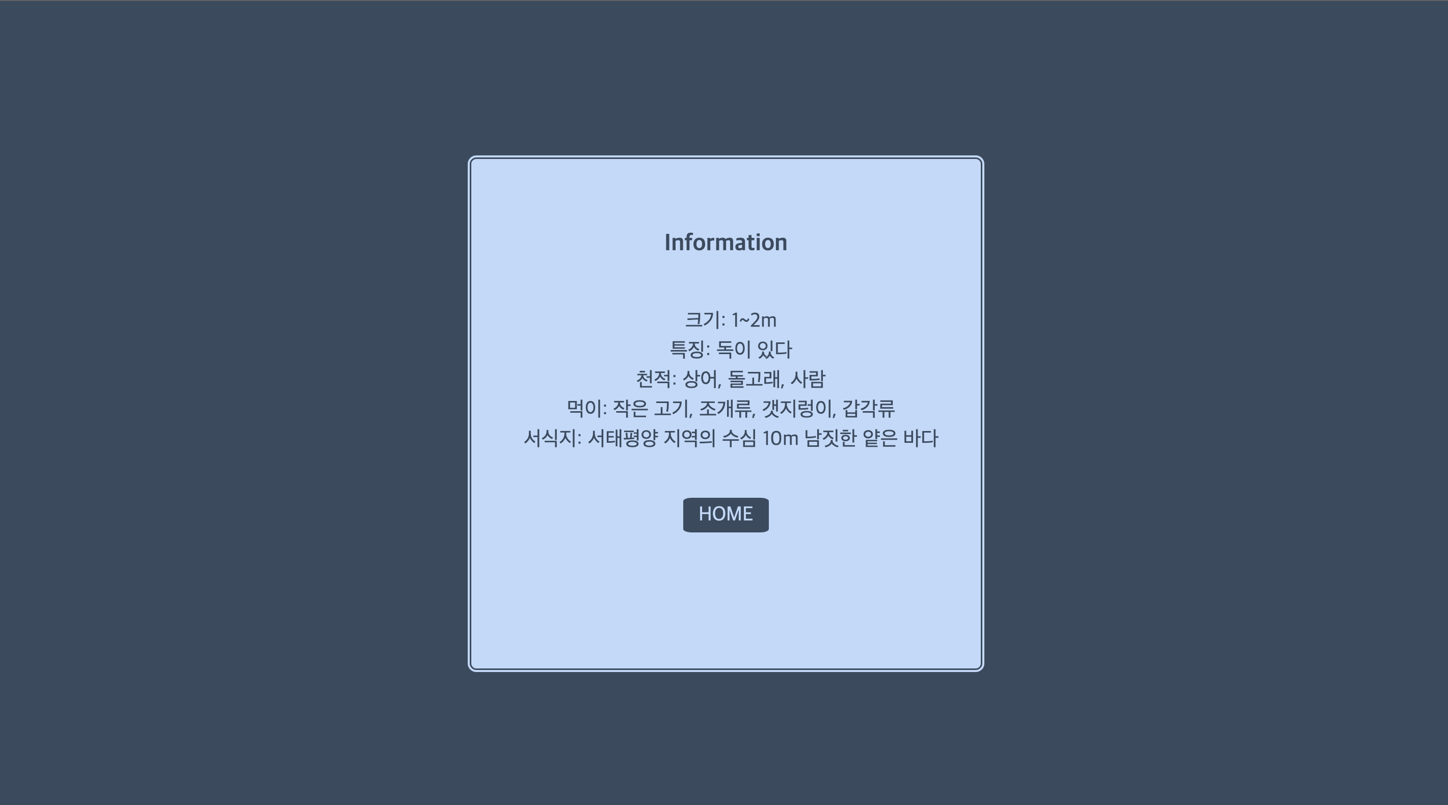 <li>서식지: 서태평양 지역의 수심 10m 남짓한 얕은 바다</li>