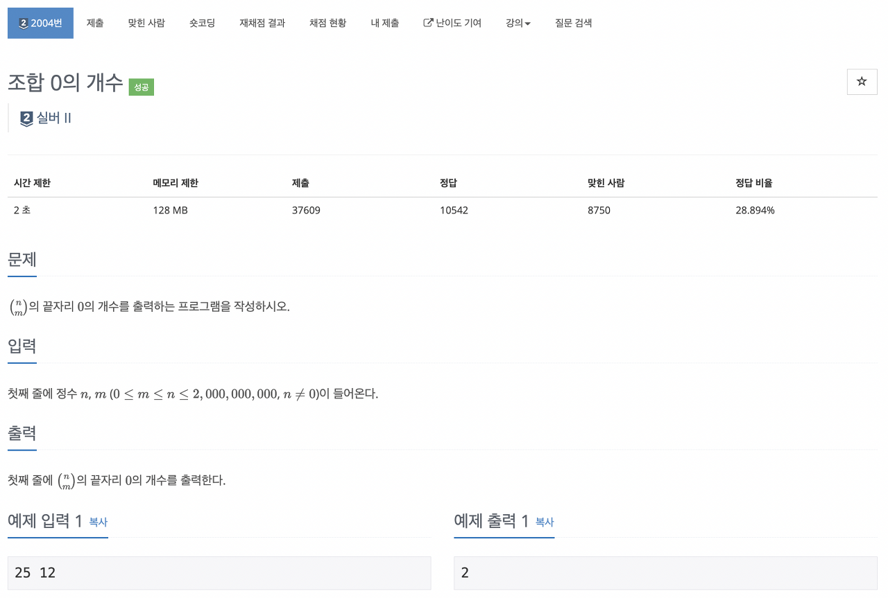 [2004] 조합 0의 개수 본문
