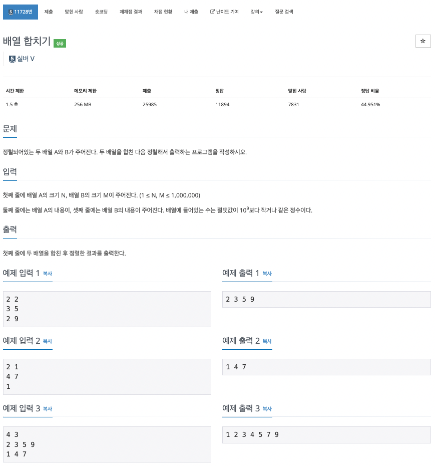 [11728] 배열 합치기 본문