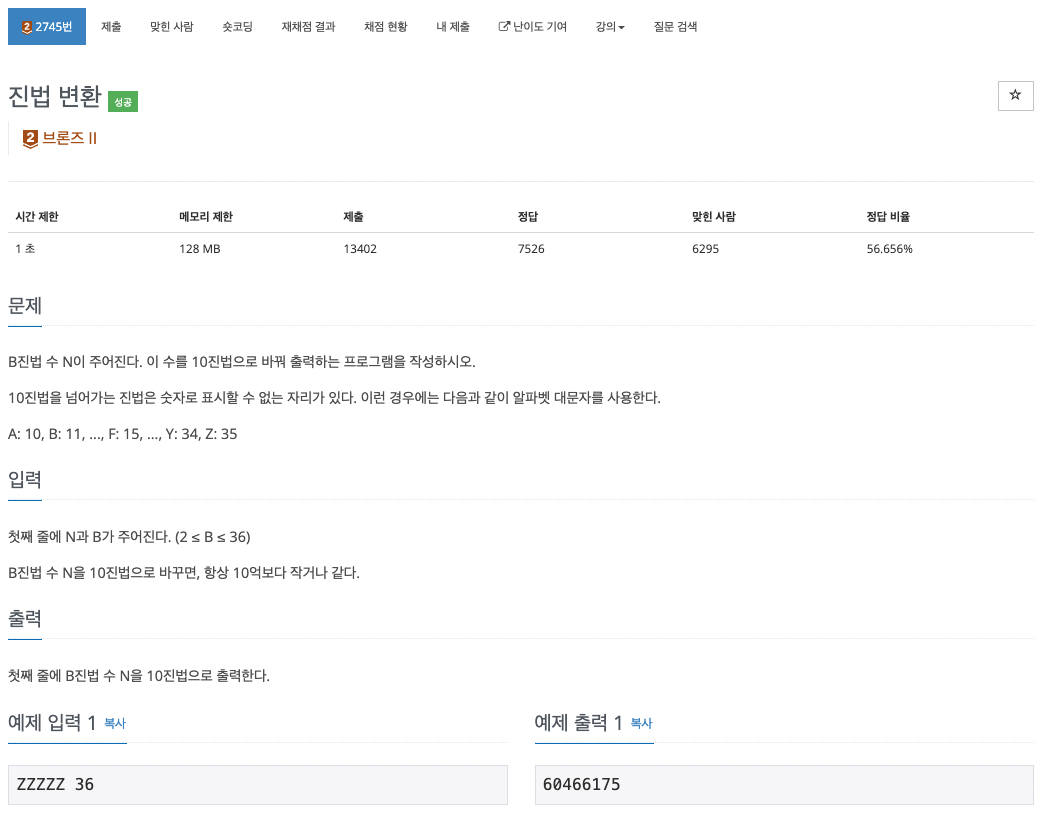 print(int(n, (int(b))))'Python > 백준' 카테고리의 다른 글
