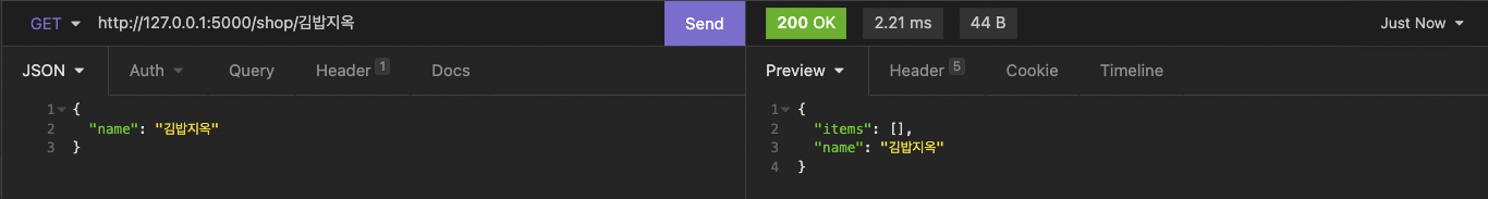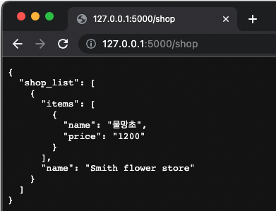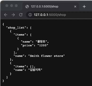# shop_list는 파이썬의 자료구조, JSON 형식으로 바꾸어주는 작업이 필요함 -> jsonify